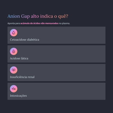 Muitos distúrbios metabólicos alteram os eletrólitos. O Anion Gap ajuda a responder perguntas que os valores isolados não conseguem, como: