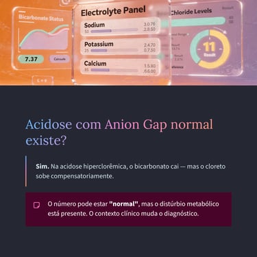Quando usado corretamente, o Anion Gap amplia o valor diagnóstico dos eletrólitos e auxilia na tomada de decisões clínicas eficientes.