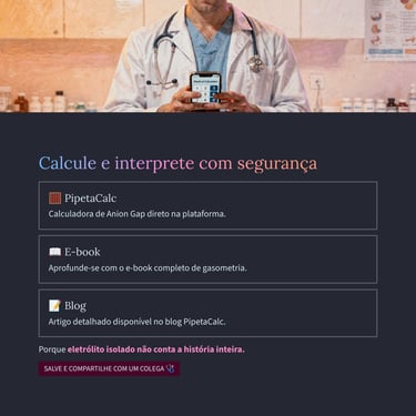 Entenda o que é Anion Gap, como calcular, valores de referência e sua importância na acidose metabólica e interpretação da gasometria arterial. Inclui calculadora prática e material completo.