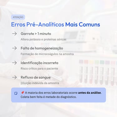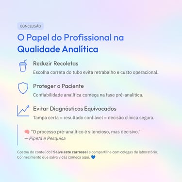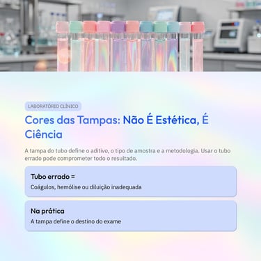Usar o tubo errado, inverter a ordem de coleta ou não homogeneizar adequadamente pode gerar coágulos, hemólise, diluição indevida ou alterações em parâmetros críticos, como coagulograma, eletrólitos e hemograma. Ou seja: um simples detalhe na tampa pode mudar completamente a interpretação clínica.