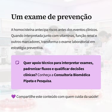 Mais do que um exame isolado, a homocisteína ajuda a conectar achados laboratoriais aparentemente desconexos.