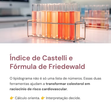 Entenda como o Índice de Castelli e a Fórmula de Friedewald transformam o lipidograma em raciocínio clínico. Saiba quando usar, limitações do LDL calculado e o papel do laboratório na avaliação do risco cardiovascular.