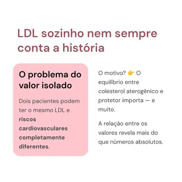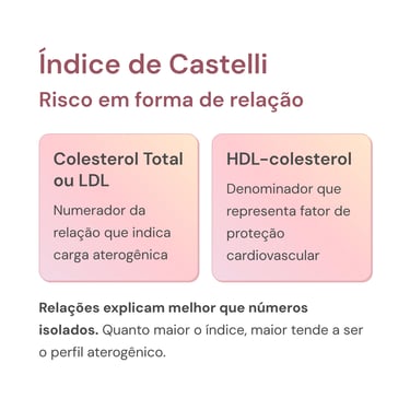 Por isso, dois indivíduos podem apresentar o mesmo valor de LDL-colesterol e, ainda assim, exibirem índices de Castelli completamente distintos, refletindo perfis de risco cardiovascular também diferentes.