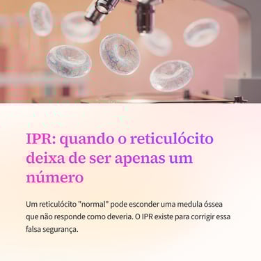O resultado costuma ser reticulócitos elevados associados a um IPR alto, evidenciando uma resposta medular compensatória adequada. Aqui, o IPR ajuda a confirmar que a anemia não decorre de falha produtiva, mas de perda ou destruição periférica. Já no pós-tratamento, especialmente após correção de deficiência de ferro ou início de terapia específica, o IPR assume um papel ainda mais estratégico.