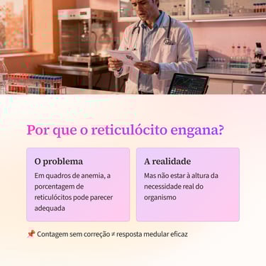 Na prática laboratorial, reticulócitos “normais” nem sempre significam resposta medular eficaz. Em situações de anemia, a liberação precoce de células jovens pode inflar a contagem sem refletir produção suficiente.