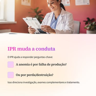 O IPR não deve ser interpretado isoladamente. Ele dialoga diretamente com outros índices hematológicos.