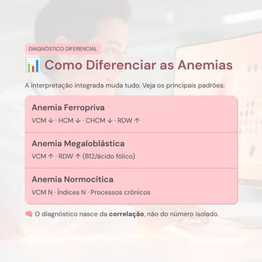 O verdadeiro valor dos índices hematimétricos está na correlação entre eles. Raramente um parâmetro isolado é suficiente para chegar a um diagnóstico confiável. É no cruzamento dos dados que o raciocínio clínico floresce.