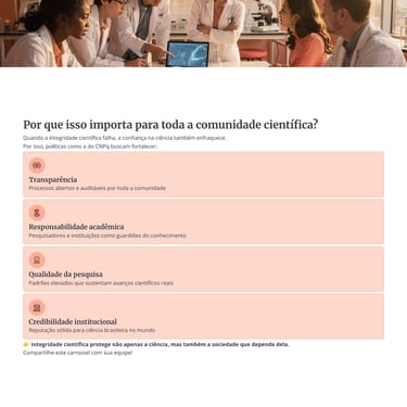 Esse ponto merece atenção especial; integridade científica não se consolida apenas com medo de punição, ela depende de ambiente institucional, formação continuada, processos claros, orientação adequada e liderança responsável.