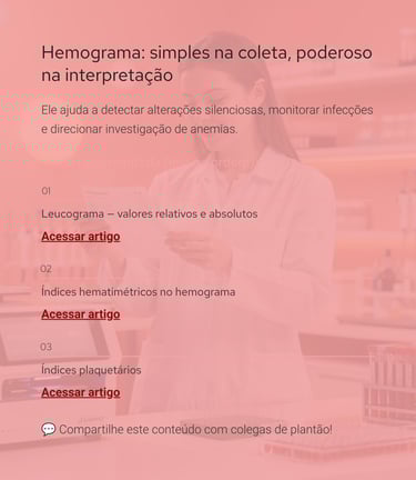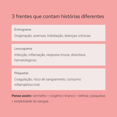 Nota importante: hemograma não fecha diagnóstico sozinho. Ele orienta o caminho e precisa de correlação com sintomas, exame físico e outros testes.
