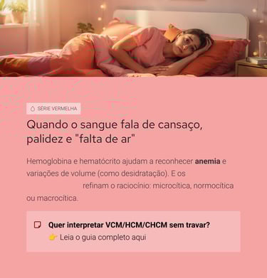 Índices hematimétricos (VCM, HCM, CHCM, RDW): refinam o “tipo” de anemia e sugerem caminhos de investigação.