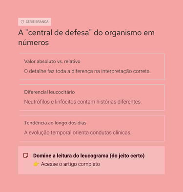 Mais do que o número total, a interpretação ganha força quando você observa tendência (subindo/descendo) e diferencial (neutrófilos, linfócitos, etc.).