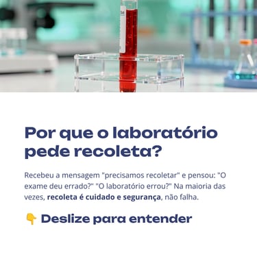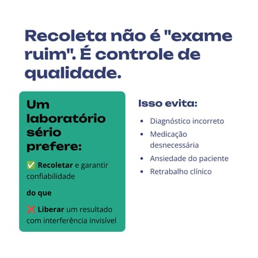 Laboratórios sérios costumam explicar claramente o motivo da recoleta e orientar o paciente sobre como evitar nova repetição.