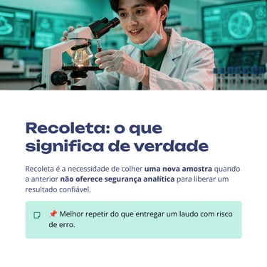 Quando o laboratório pede uma recoleta, ele está, na verdade, fazendo uma escolha técnica e ética muito clara: preferir repetir a coleta a entregar um resultado que não seja seguro. Essa decisão nem sempre é compreendida de imediato, mas carrega um compromisso essencial com a qualidade e com a responsabilidade profissional.