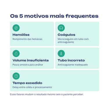Quando o tempo entre coleta e processamento ultrapassa o limite aceitável, o laboratório opta pela recoleta para evitar um resultado que não represente a condição real do paciente.