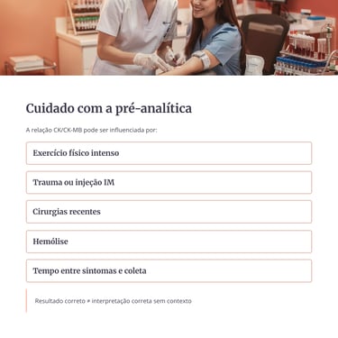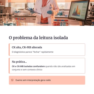O problema não está no exame em si, mas na leitura isolada. É aí que a relação CK/CK-MB ganha importância: ela organiza o raciocínio e ajuda a responder a pergunta certa.