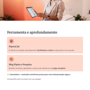 Ela permite inserir os valores e obter rapidamente a relação, apoiando a interpretação técnica no dia a dia do laboratório.