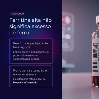 Em infecções, inflamações e doenças crônicas, seus níveis podem se elevar independentemente dos estoques reais de ferro. Assim, uma ferritina alta não exclui deficiência funcional.