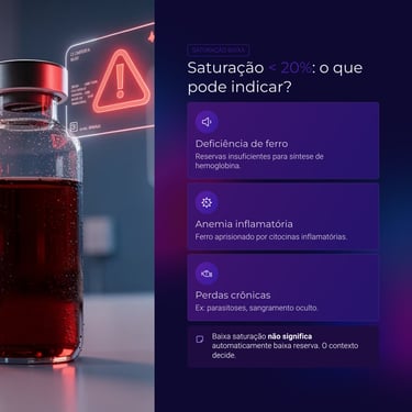 < 20% → Sugere deficiência de ferro ou bloqueio inflamatório