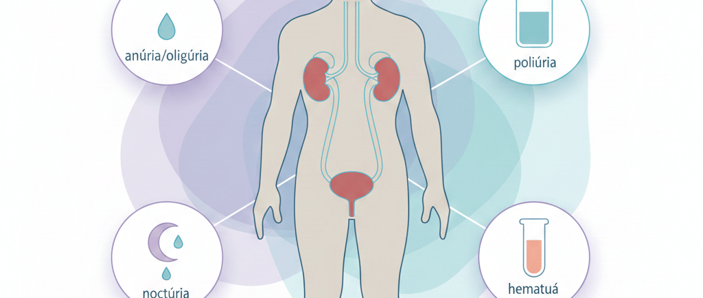 Alterações na forma de urinar, seja pelo volume (anúria, oligúria, poliúria), pelo horário (noctúria), pela cor (hematúria) ou pelos sintomas associados (dor, urgência, perda involuntária) funcionam como um espelho da saúde renal e urinária.